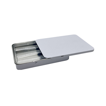 Using the heat gun, carefully apply heat to the band and slowly go around the whole diameter of the tin. Keep heat several inches away from shrink band as the shrinking process is very quick and if heat is applied for too long, the shrink band will split or tear, making the band unusable. Don’t get discouraged if the first several times you try it and the band splits — you will get the hang of it! Or choose a fully sealed tin box.